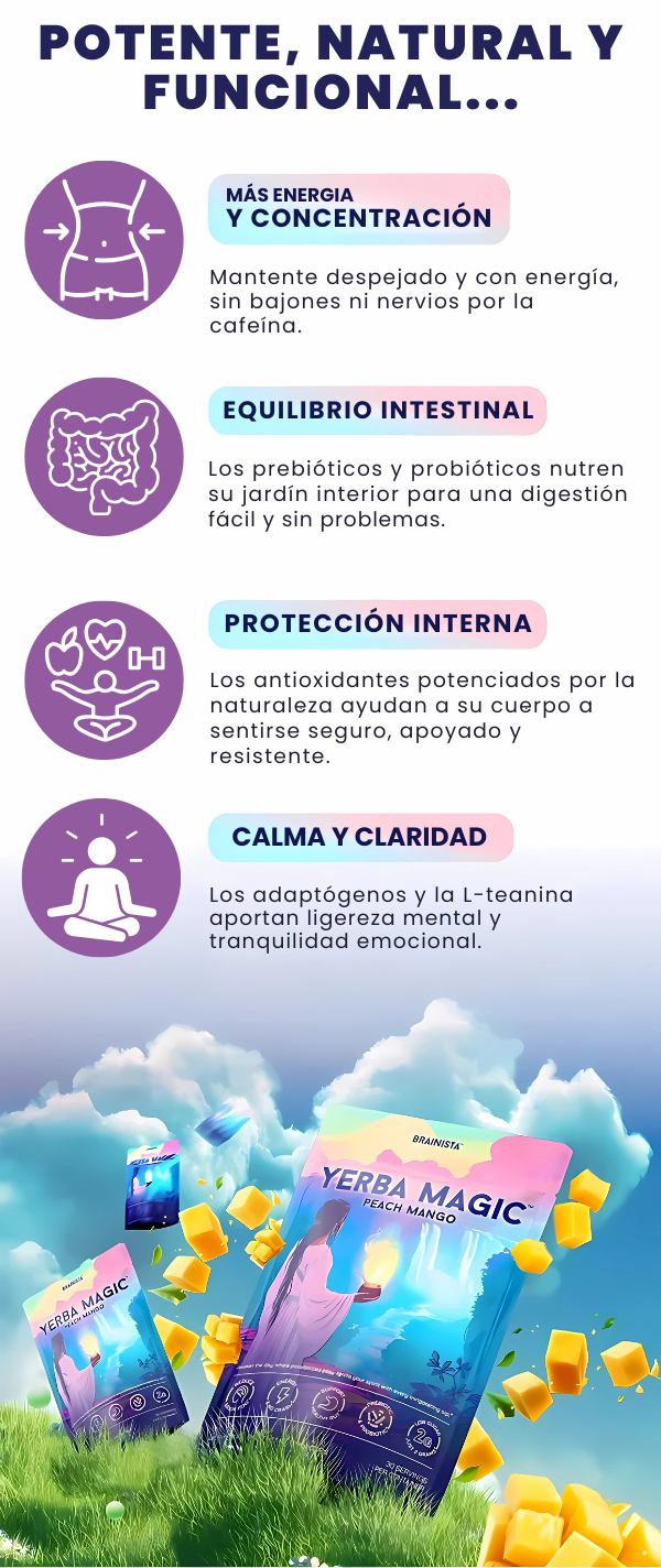 Dejé el café por completo gracias a Yerba Magic. Me da energía sostenida y no me da el bajón de la tarde. ¡Recomendado!